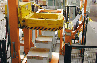Concepto universal de paletizado MSK Unitech, que permite paletizar los bultos y cajas sin tiempo de inactividad en cambios de trabajo